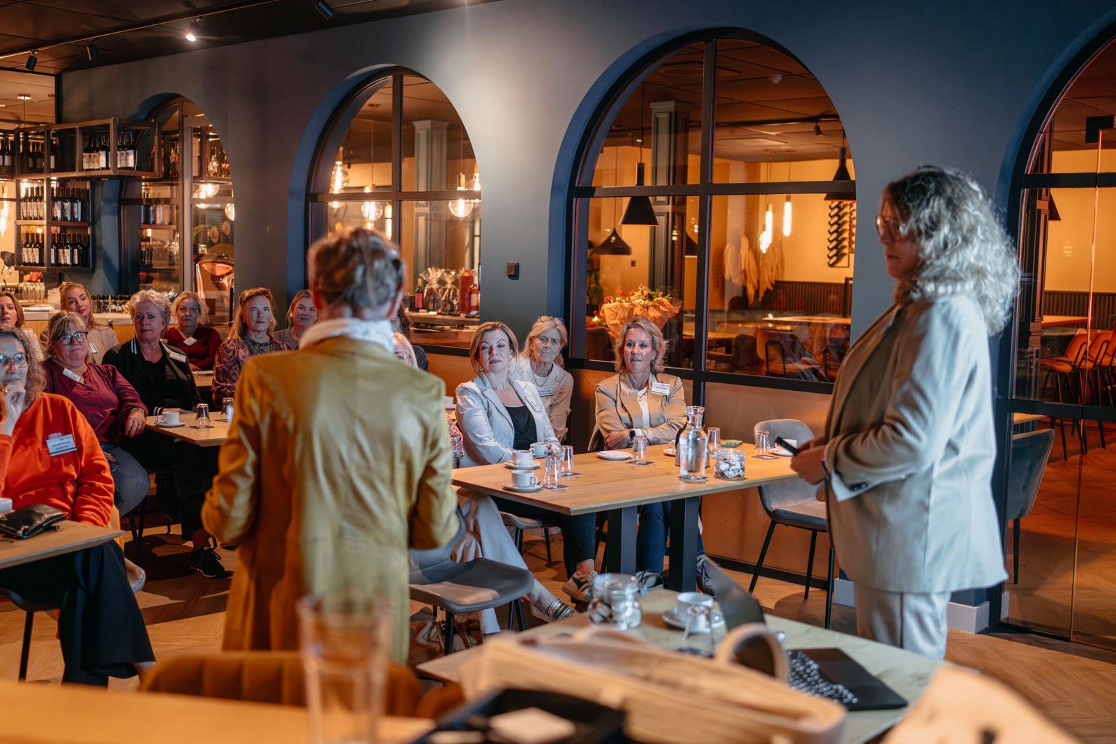 Met maar liefst 35 enthousiaste dames kwamen we samen voor de FemVeen-bijeenkomst. Bij binnenkomst werden we hartelijk verwelkomd door het bestuur en kreeg iedereen een naamkaartje – altijd leuk om meteen te weten wie er bij je aan tafel zit. De sfeer zat er vanaf het begin goed in: gezellig, nieuwsgierig en met een gezonde dosis interesse in het thema van de avond — Artificial Intelligence (AI).